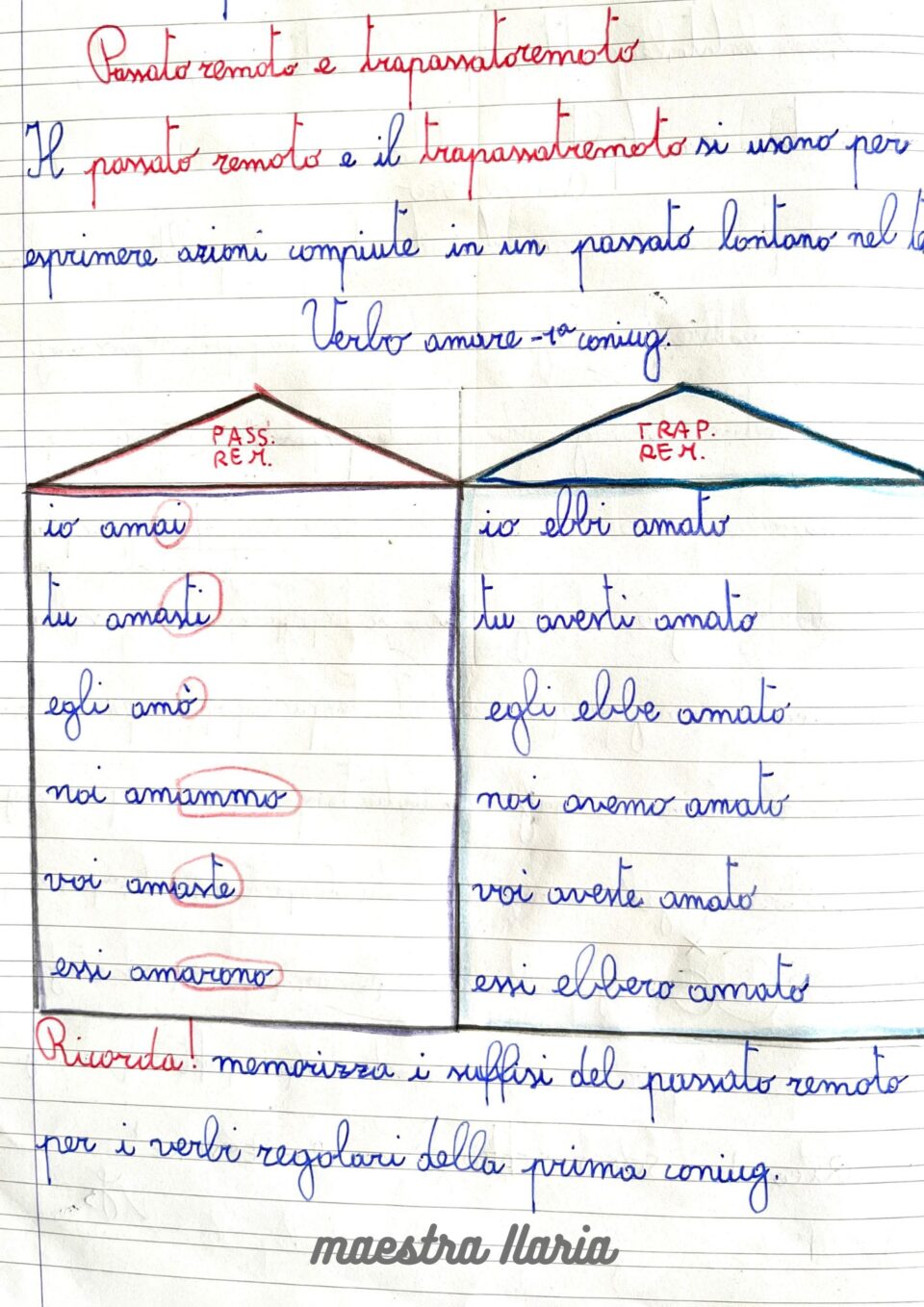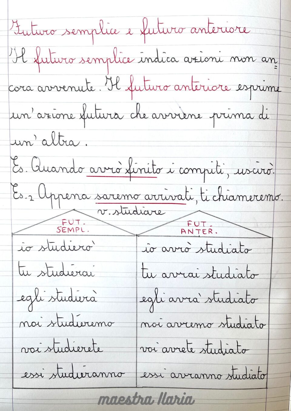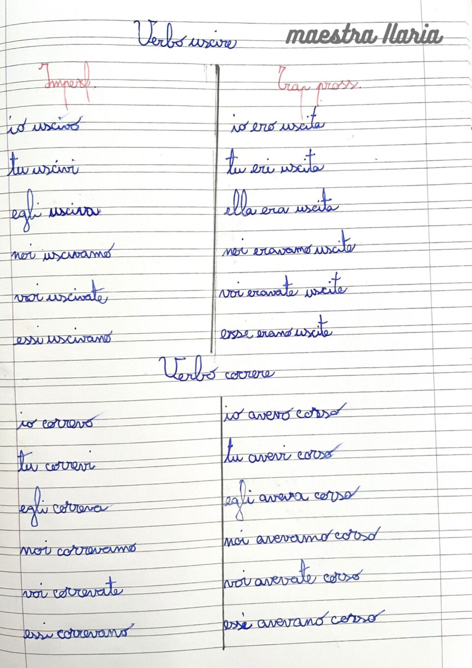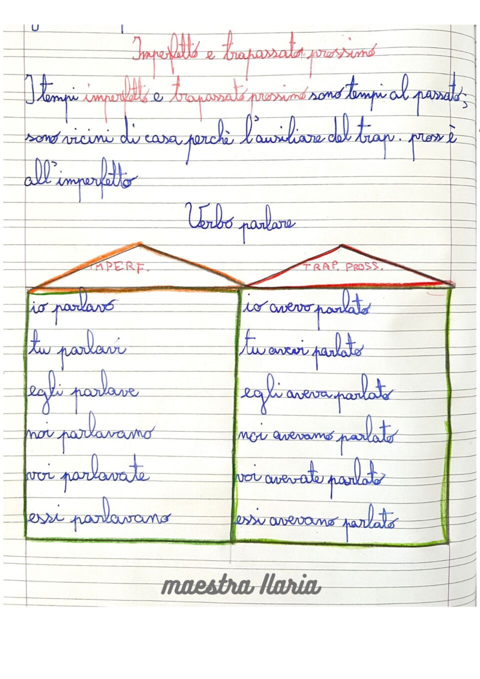 Possiamo spiegare così l’utilizzo di questi tempi verbali sul quaderno: