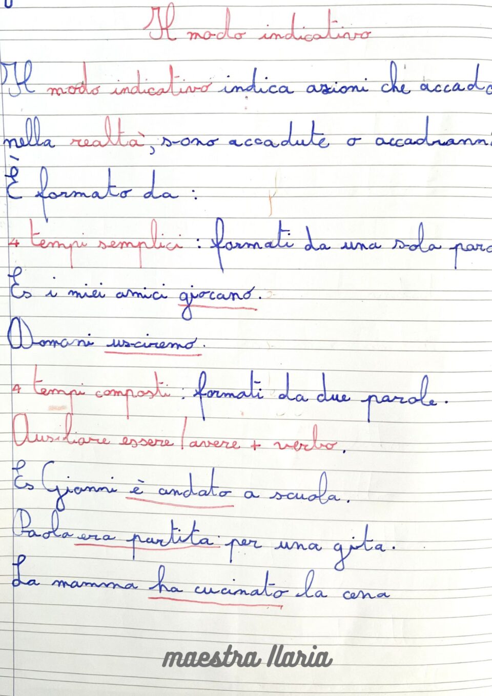 Ora possiamo spiegare ai bambini che cos’è il modo indicativo: io in genere spiego che si tratta di un grande gruppo che comprende solo azioni della realtà, con verbi in tempi semplici e composti.