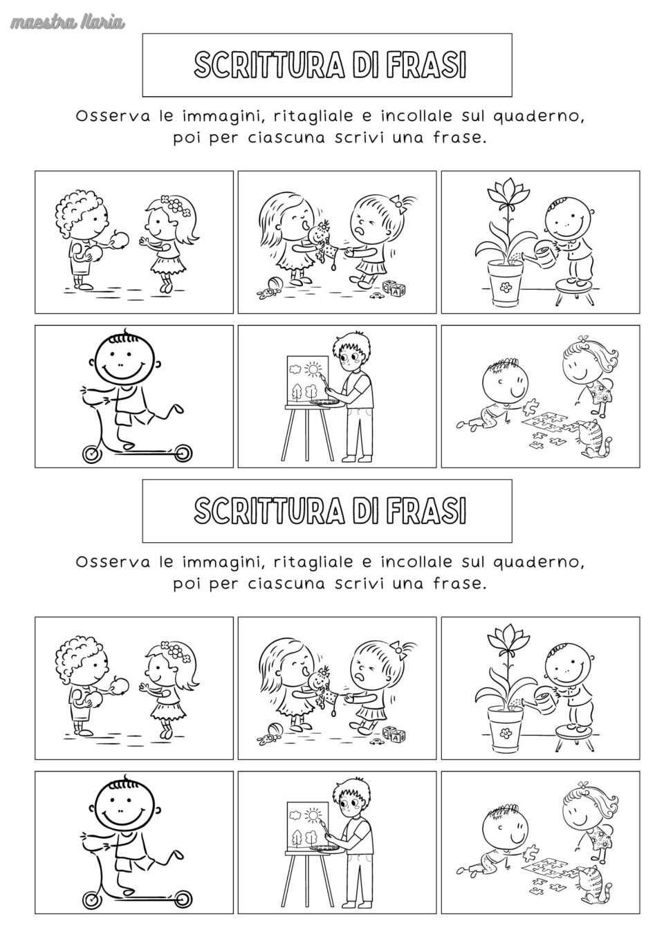Per avviare la scrittura delle prime frasi, consiglio di dare un’occhiata a questa pagina, dove ho inserito qualche spunto per iniziare con le prime attività.