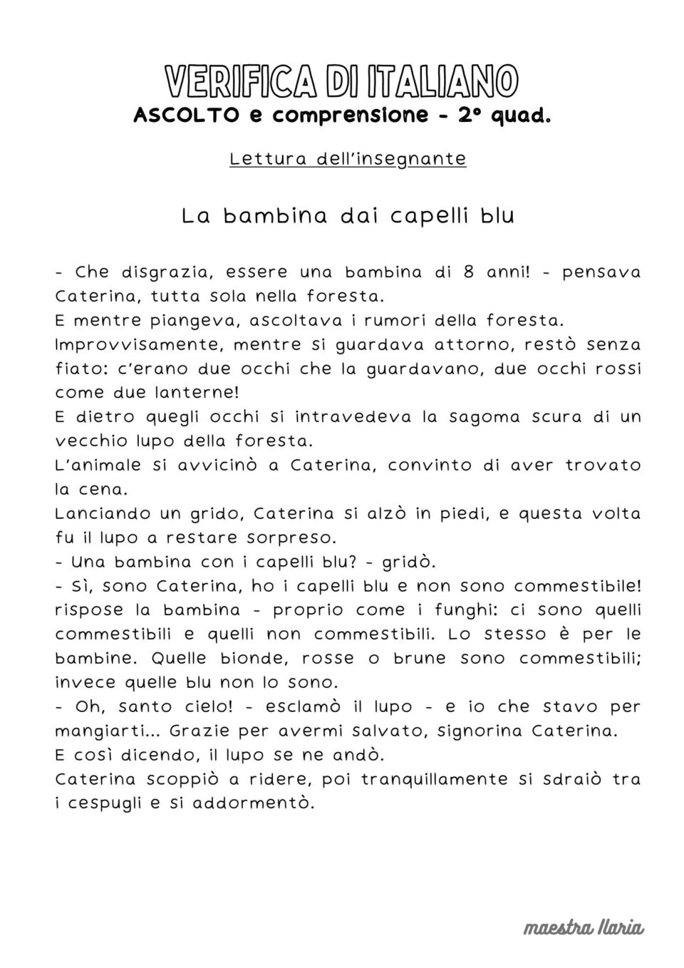 Ecco il testo che l’insegnante leggerà due volte alla classe.